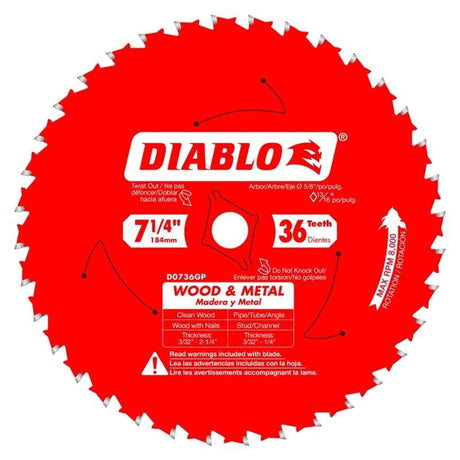 Diablo D0756F 7-1/4" x 56-Teeth Steel Demon™ Carbide Saw Blade for Thin Metal