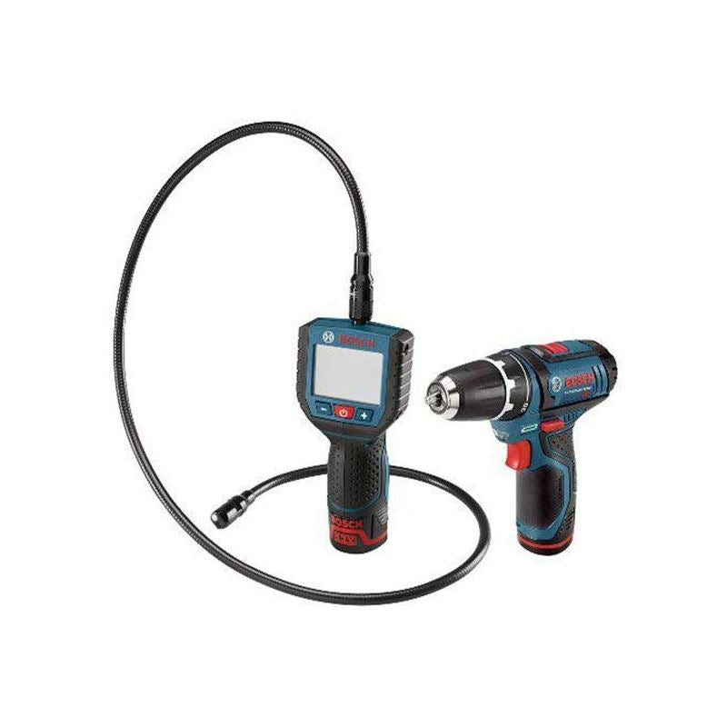 Bosch PS90-1A 12V Max Cordless Lithium Optical Scope Best Optics offered for clarity of image. Large 2.7" Screen for easy viewing. 9" Pin connector makes it easy to connect or remove the various attachments. Bright LED light for increased visibility in dark areas. Video out for easy connection and viewing. The lightweight design of the PS31-2A is ideal for easy handling in overhead operations and tight spaces, and the Bosch 12V Max Drill Driver lets you tackle professional jobs with ease.