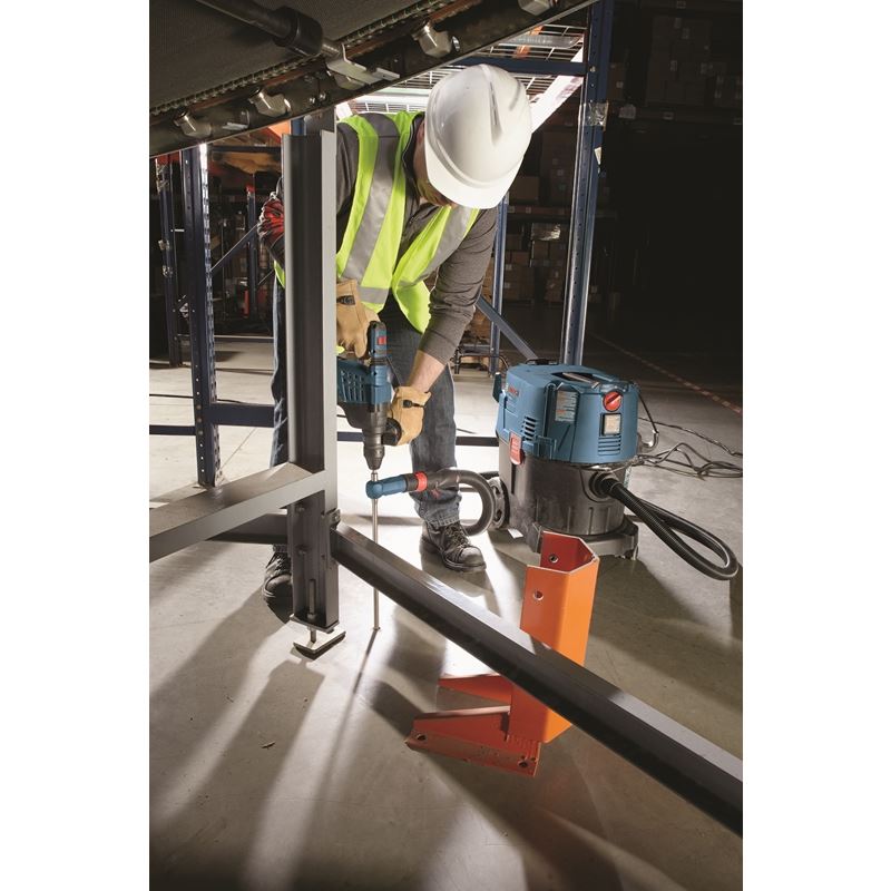 The Bosch Speed Clean bit connected to vacuum system cuts hole-drilling process by 50% less versus the standard hand-cleaning method. A proprietary Bosch design allows dust and debris to be removed through the milled center of the bit. Dust reduction, which reduces friction on the bit, also increases drilling speed by 25 percent. A rubber adapter is provided with every Bosch Speed Clean bit. Bit life is comparable to Bulldog and SpeedX bits. System also reduces airbourne silica dust, a known contributor to respiratory illnesses.