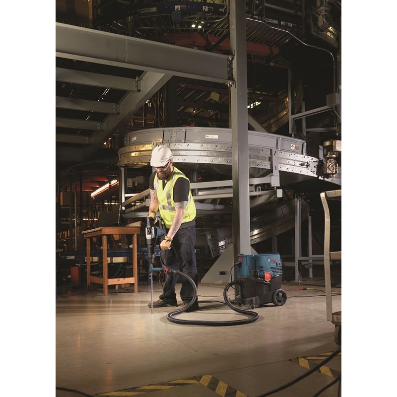 The Bosch Speed Clean bit connected to vacuum system cuts hole-drilling process by 50% less versus the standard hand-cleaning method. A proprietary Bosch design allows dust and debris to be removed through the milled center of the bit. Dust reduction, which reduces friction on the bit, also increases drilling speed by 25 percent. A rubber adapter is provided with every Bosch Speed Clean bit. Bit life is comparable to Bulldog and SpeedX bits. System also reduces airbourne silica dust, a known contributor to respiratory illnesses.