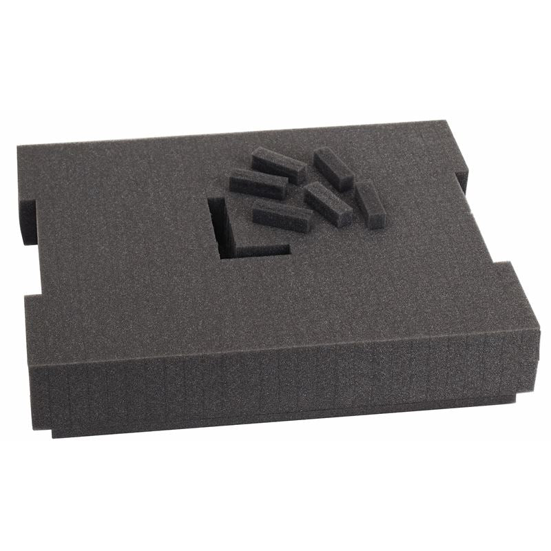 Designed for use with the Bosch L-BOXX-2 carrying case, which is part of the Bosch Click & Go mobile-transport system. This Bosch Foam-201 pre-cut foam insert provides added versatility and convenience. The insert features customizable foam pieces which push/pull out to accommodate Bosch or any other tools. Users can make completely customized tool inserts using this foam. This foam helps to keep valuable equipment safe and protected during transport or storage