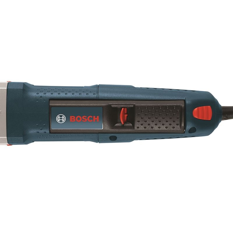 The Bosch GWS13-50P 5-In. Angle Grinder with Paddle Switch furnishes an easy-to-operate multi-grip paddle switch for user control and comfort, while delivering 13 amps and 11,500 RPM of professional power. The grinder has constant electronics for easy starts, level operation and dependable speed under load. For longer life, it was designed with directed air flow, diverting dust away from vital components, and it has also direct-motor cooling, giving it higher overload capabilities. It is equipped with a two-position Vibration Control side handle, making it less strenuous to operate. For safety, it features an integrated acceleration sensor to limit inadvertent recoil and restart protection to protect against unintended startup. It has a burst-protection quick toolless adjustable guard and a large spindle lock for a more convenient disc change. The Service Minder brushes stop the grinder when preventative maintenance is required.