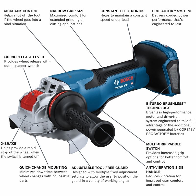 Bosch GWX18V-13PN PROFACTOR 18V Spitfire X-LOCK 5 - 6 In. Angle Grinder with Paddle Switch (Bare Tool)