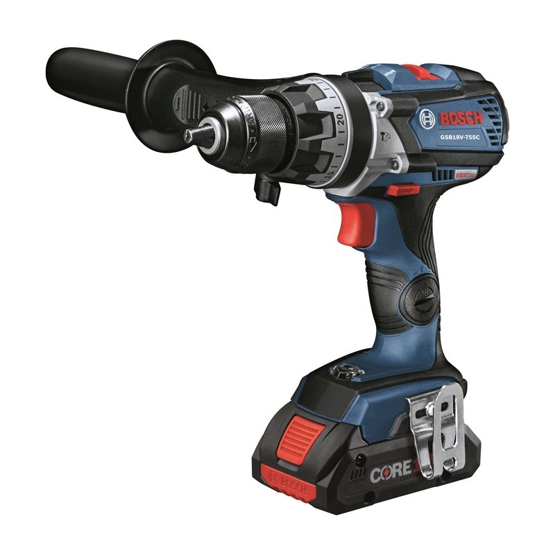 The Bosch 2-Tool Combo Kit with two CORE18V batteries combines drilling and driving versatility with next-gen Li-ion 21700 cell technology. The GXL18V-224B25 kit features two CORE18V batteries that provide next-gen Li-ion 21700 cell technology in lightweight, high-power batteries with all-day performance. The GDX18V-1800C Freak 1/4 In. and 1/2 In. Impact Driver delivers results, with the two-in-one bit/socket drive that offers a 1/4 In. quick-change hex shank holder for bits, and a 1/2 In. square drive for sockets. Producing up to 1,800 In.-Lbs. of torque, the Freak features a head length of 5.8 In., to accomplish any drilling or driving application. The GSB18V-755C Brute Tough 1/2 In. Hammer Drill/Driver has KickBack Control technology, up to 755 In.-Lbs. of torque and 0-31,500 beats per minute (bpm), at only 3.5 Lbs. (tool only, not including battery). Both tools feature Bluetooth® connectivity to an optional Connected Tool Module and EC Brushless motors.
