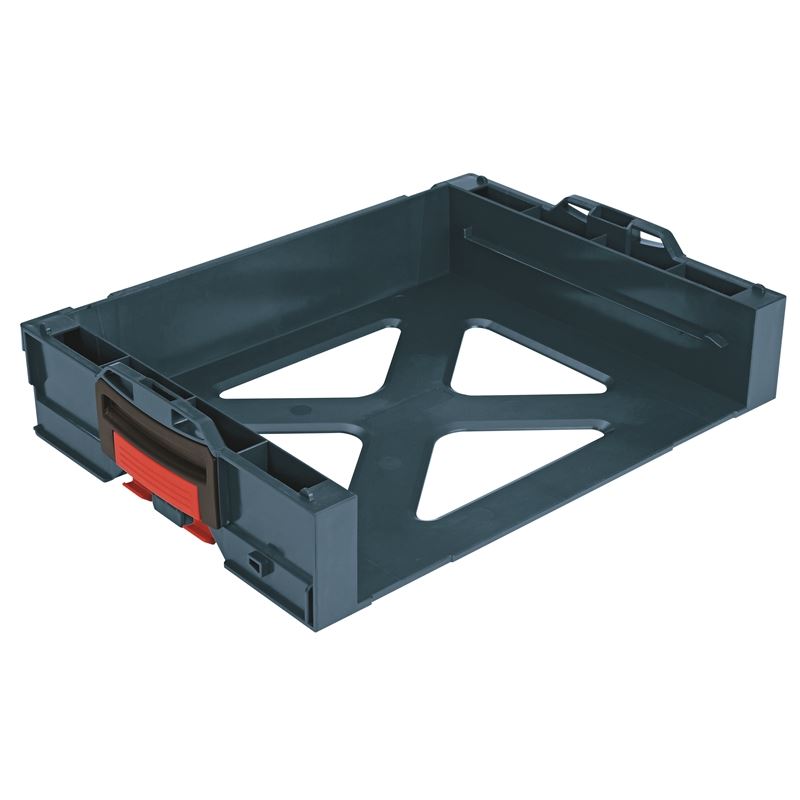 The L-RACK-S component attaches to any L-BOXX or any other L-RACK-S. This allows you to add storage instantly to any size L-BOXX (1,1A, 2, 3, 3D, or 4). Combine multiple L-RACK-S shelves to create an organization structure to fit your needs. The L-RACK-S utilizes the same Single-Click stacking technology as L-BOXX The Bosch L-RACK is a customizable expansion option for the Click & Go System. Users can now choose to add new L-RACK drawers, i-BOXX Trays and organizer sets to expand their very own customized storage, organization and transport solution. Add a few L-RACKs to an L-BOXX (1, 1A, 2, 3, 3D or 4) to build specific tool kits or stack them high or side-by-side to create a stationary storage system in your shop. The entire system uses the same Single-Click stacking technology, so you can keep organized and mobile.