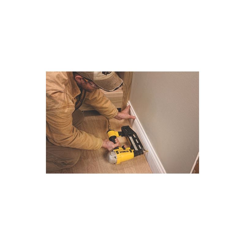 Precision Point Technology: Easy nail placement as a result of a smaller nose compared to current DEWALT nailers and no need to compress the contact trip to actuate the tool