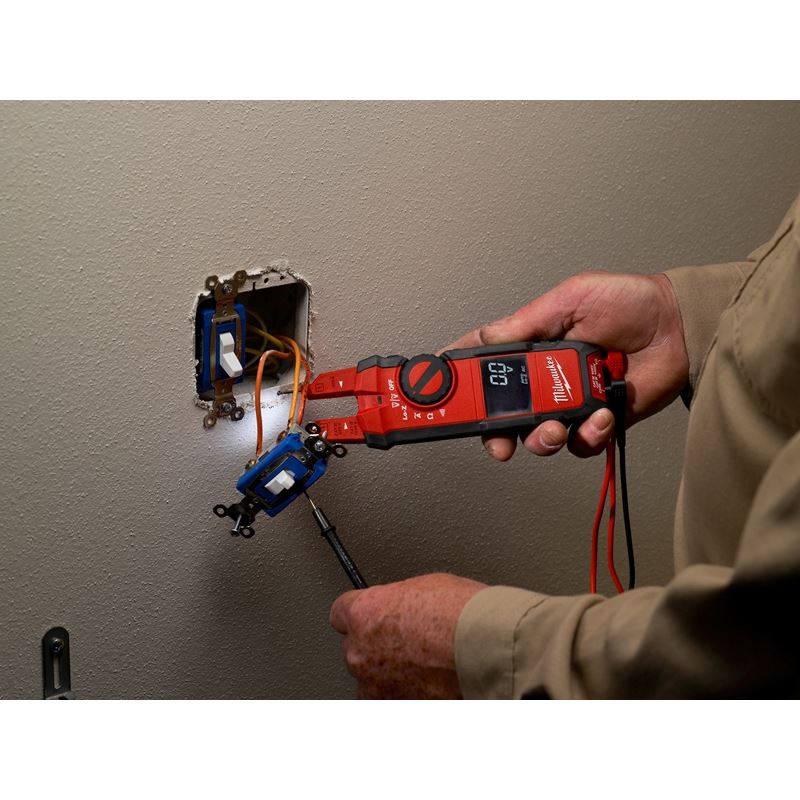The Milwaukee fork meter is a heavy duty True-RMS electrical tester for professional residential, commercial and industrial applications. The 2205-20 is four tools in one providing current measurement, voltage measurement, voltage detection and task lighting. Additionally, the new tool provides a wide 0.63 in. fork opening, high 200 amp current range and a high contrast white-on-black display.