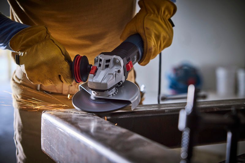 Compact yet powerful, the Bosch GWS14-60 6 In. angle grinder with slide switch combines high performance and comfort for a variety of grinding and cutting applications. The powerful 13-amp motor delivers 9,700 rpm for maximum performance and productivity. A narrow, lightweight design provides an outstanding power-to-weight ratio and better ergonomics. Fitted with slide switch and anti-vibration side handle for increased user comfort and control in longer applications. Enhanced motor cooling with air inlets on the backside delivers improved direct cooling and dust protection. Engineered with features such as KickBack Control, soft start, overload and restart protection. Compatible with existing Bosch grinding guards and shrouds for use in a range of metal and concrete applications.