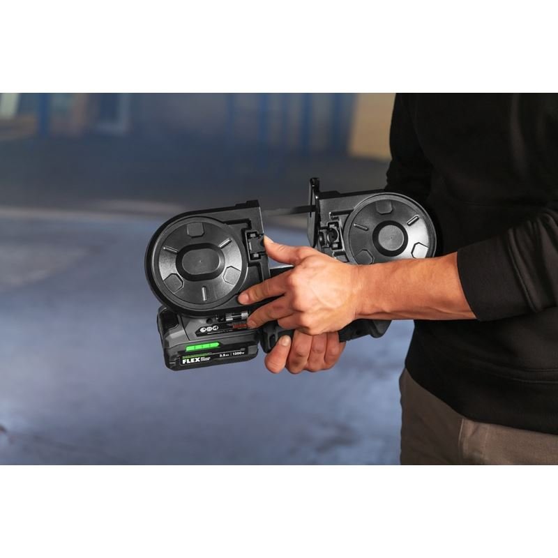 Power through conduit, rod, pipes, and strut with the FLEX 24V 2-1/2in Compact Band Saw. This powerful compact band saw is 27 percent more compact and 43 percent lighter than its larger 5-inch deep cut counterpart, making it an ideal lightweight portable band saw for plumbers and electricians needing to cut material in place while up on a ladder. Its powerful brushless motor delivers fast cutting speeds for clean, burr-free cuts and its variable speed trigger provides better control when cutting through different materials. A quick-release tool-free blade cover protects the active cutting area for added safety during use, and an LED light illuminates dark work areas. A rafter hook allows quick and easy storage from ladders, struts, and FLEX STACK PACK rack rails between cuts. This cordless band saw delivers the FLEX Advantage of unmatched battery power, runtime, and fast charging (battery and charger sold separately). Its protected by the FLEX Founders Limited Lifetime Warranty when registered within 30 days of purchase at registermyFLEX.com through December 31, 2023.