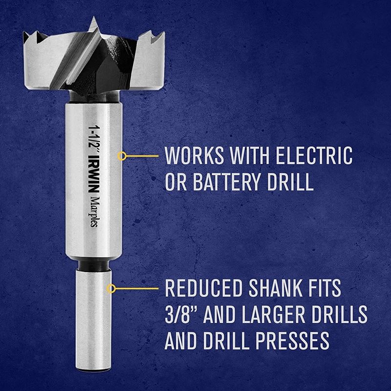 IRWIN TOOLS Marples Wood Drilling Forstner bits are constructed of tough carbon steel to stay sharp and produce precise pocket holes and flat-bottomed (blind) holes. The ultra-sharp cutting edges feature optimized angles to cut more quickly and accurately through hard and soft woods than traditional forstner bits. With a reduced shank, these bits fit 3/8 in and larger drills and drill presses. They are also ideal for fine woodworking, cabinet-making and more.SIZES INCLUDED: