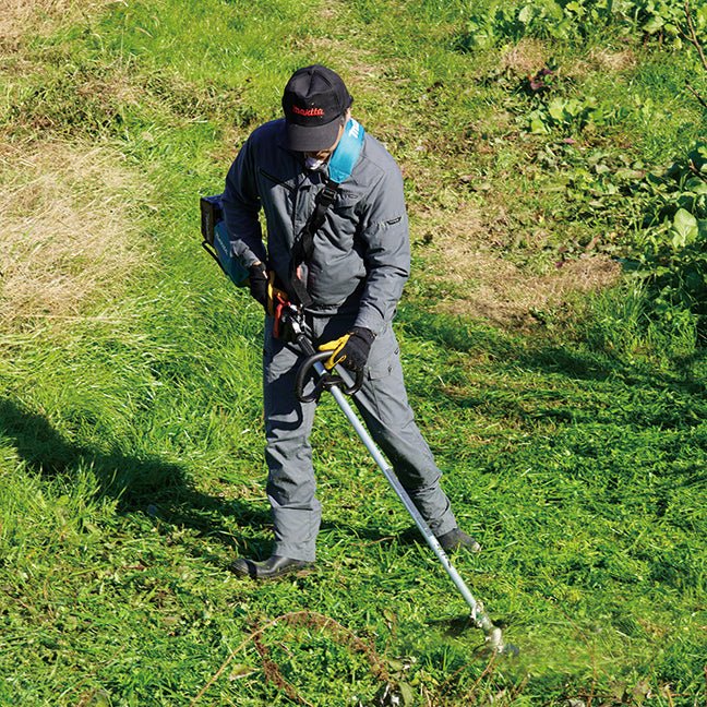The Makita UR014GZ01 40Vmax XGT Brushless Line Trimmer delivers the power of a 35cc gas model with its 1.5kW brushless motor. Its 17-3/4" cutting width and loop handle enhance control and efficiency. Featuring two-stage speed control reaching up to 5,700 RPM in high-torque mode, it handles demanding trimming tasks with ease. The reverse rotation function lets you adjust blade direction to suit different jobs, making it a versatile tool for professional use. This tool-only model integrates advanced design and power for precise, heavy-duty trimming.