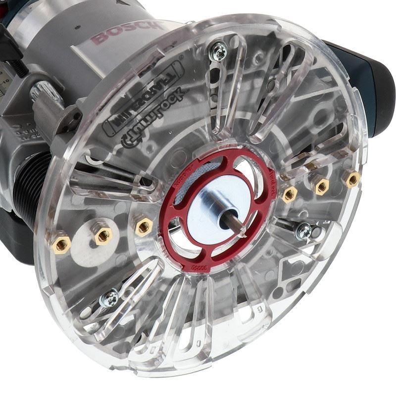 Universal 2 piece bushing system is compatible with all router sub-bases with a 1-3/16in (30.2mm) center hole diameter