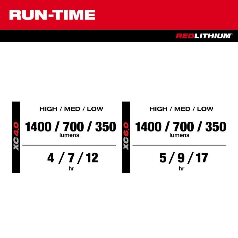 Over 4 Hours of Run time on HIGH with an M12 XC4.0 Battery
