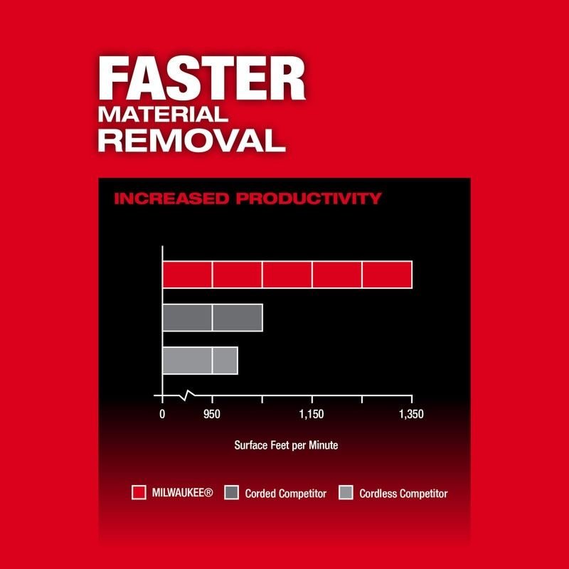 Variable Speed Dial provides a belt speed range from 1350SFM to 750SFM (Surface Feet per Minute) for greater control of the removal rate in application.