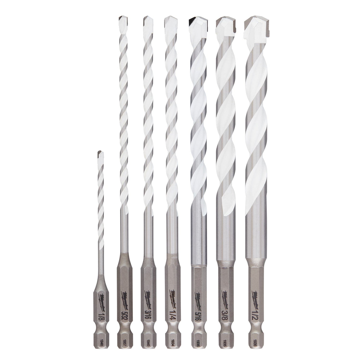 Our SHOCKWAVE Impact Duty™ Carbide Multi-Material Drill Bits are the most versatile bits, designed to tackle materials such as brick, block, concrete, steel, aluminum, ceramic tile, backerboard, wood, PVC, and drywall. The aggressive, multi-grind carbide tip delivers up to 10x longer life in stacked materials and up to 85% faster drilling speeds in metal. Equipped with a 1/4" hex shank, these general-purpose bits are compatible with impacts, drill/drivers, and hammer drills. These multi-purpose bits provide the ideal all-in-one solution for the widest variety of materials, tools, and applications. Our kit includes (1) 5/32", (1) 1/8", (1) 3/16", (1) 1/4", (1) 5/16", (1) 3/8", and (1) 1/2" SHOCKWAVE Impact Duty™ Carbide Multi-Material Drill Bits. Packaged in a medium, single-sided hard case designed for use in our PACKOUT™ Storage System.