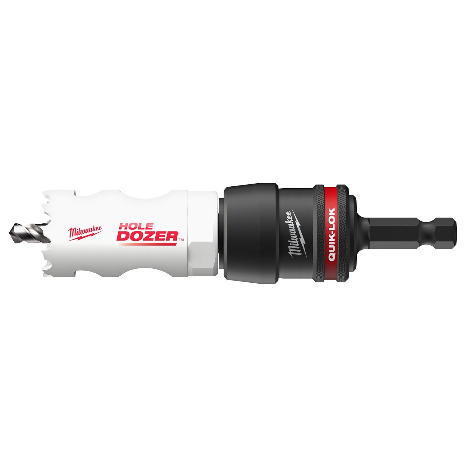 Our QUIK-LOK™ Arbor Set provides the fastest hole saw changes and universal fit with all industry standard threaded hole saw sizes, types, and brands. The included adapters ensure compatibility with small-thread and large-thread hole saws and eliminates the need for multiple arbors, saving you time and money. Our QUIK-LOK™ system is designed with the ultimate durability to deliver the strength and reliability to match the all-day demands of the job site. Due to the threaded adapter design, this system retains Hole Enlargement capability. The Reusable Large Thread Pin Adapter is compatible with hole saws from 1-1/4" up to 6-7/8" without the risk of thread stripping, binding or spin-off and retains Hole Enlargement capability. The Small Thread Adapter is intended for hole saws from 9/16" to 1-3/16" with 1/2" x 20 Threads. The Large Thread Adapter is intended for hole saws from 1-1/4" up to 2" with 5/8" x 18 Threads.