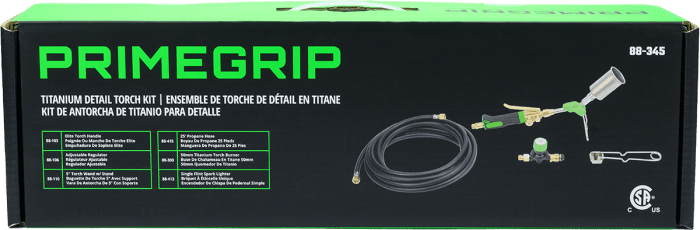 CSA certified premium roofing torch kit with a titanium burner, 5 inch wand and our Elite Torch Handle. The included accessories in this kit make this torch ready to go right out of the box.