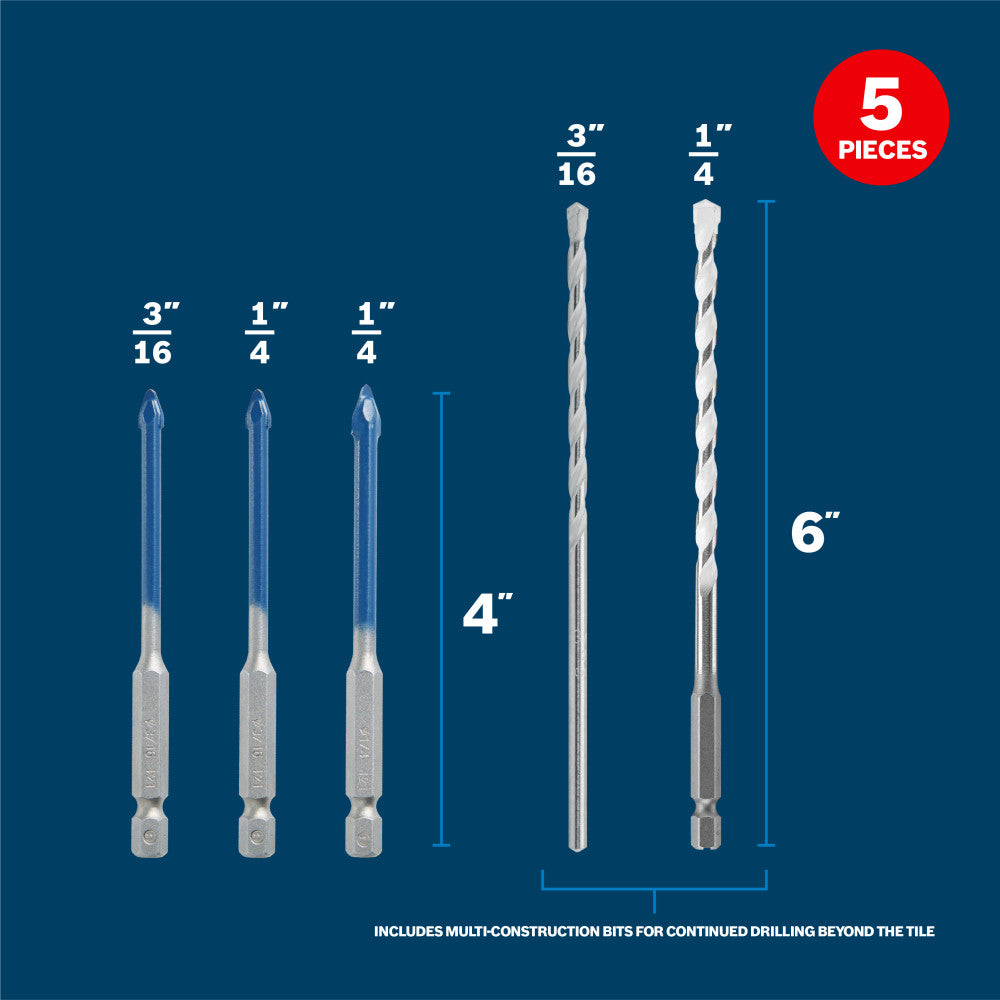 Bosch PTBXMC05 5 pc. Porcelain Tile and Multi-Material Drill Bit Set