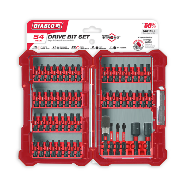 54-piece set for up to 50% savings,Extreme durability and impact resistance for up to 50X longer life versus standard drive bits