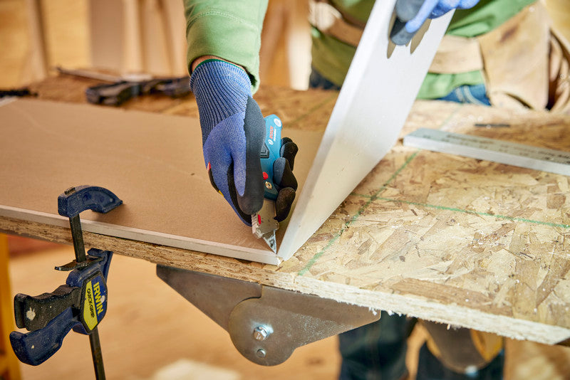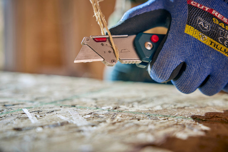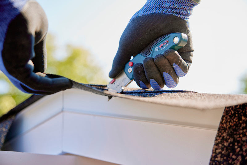 The Bosch H11-11100-1 Folding Utility Knife is precisely engineered to deliver outstanding ergonomics and performance in a range of cutting applications. Compact and portable, the knife is ideal for everyday carry and features a one-button folding lock for fast and easy use. An innovative, built-in thumb rest helps the user apply more force when cutting tougher materials. Blade changes are fast and easy with a simple, one-button mechanism to release or lock the blade, delivering ultimate jobsite efficiency. Integrated blade storage accommodates 3 extra blades directly on the tool eliminates the need to unfold the knife for access. A string/box strap cutter and belt clip add convenience, while the robust, aluminum housing delivers durability for daily use. Works with most standard utility blades.