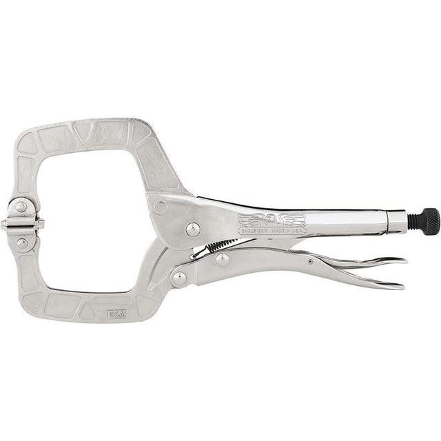 The Eagle Grip 11in Locking C-Clamp with Swivel Pads combines unparalleled clamping force and durability with versatility and a long life. Wear and tear is a foreign term at Eagle Grip. The C-clamp's swivel pads allow for smooth performance on a variety of tapered and fabrication jobs. The swivel pads also reduce surface damage by distributing the clamping force for maximum effectiveness. Our American-made steel delivers legendary strength to Work. Perform. Outlast. You should never have to sacrifice quality or toughness when it comes to your toolbox. Eagle Grip gives you both at an unmatched value