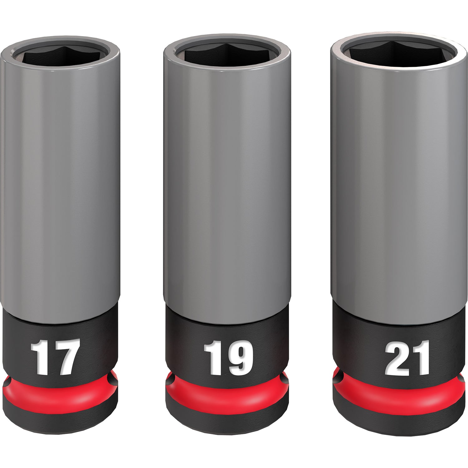 Our SHOCKWAVE Impact Duty™ 1/2 Drive 6 Point Lug Nut Wheel Sockets feature the Most Durable, Non-Marring Sleeve to protect rims during tire changes. The ARMOR-GUARD™ Sleeve is made with premium, durable plastic for Lasting Protection against cracking or shredding during wheel installation and removals. The lug nut sockets are thin-walled for easy access in tight wheel assemblies and feature a non-marring plastic insert to protect lug nuts during use. The sleeves are color-coded, Gray for Metric sizes and Red for SAE sizes, to ensure easier socket selection while also featuring stamped & ink filled sizes for the Boldest, Longest Lasting markings. Our sockets are engineered with high strength forged steel for optimized performance in heavy-duty applications. The dual-hole design and ring groove allow for easy socket attachment and removal. MILWAUKEE® SHOCKWAVE Impact Duty™ Lug Nut Wheel Sockets are optimized for use with 1/2" drive impact wrenches, drivers, ratchets, and adapters and meet ASME industry standards for thin-walled sockets.