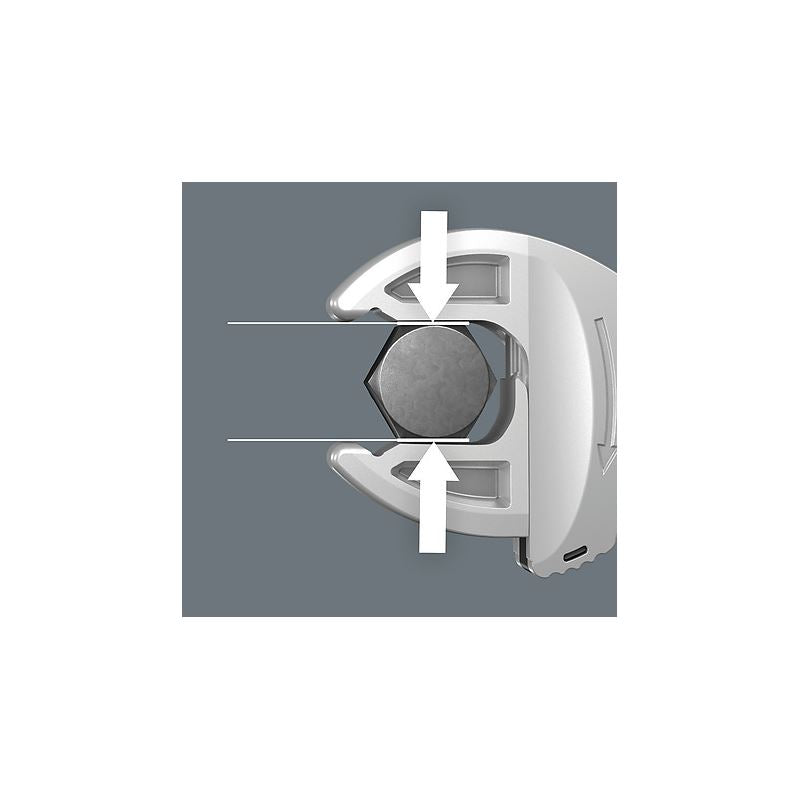 Many users wish to have a universal screwdriving tool with the widest possible range of applications. It should be a single tool for multiple metric and imperial dimensions. It should automatically adjust to the different screw sizes. It should be safe to grab without damaging anything and allow for a high working speed. The continuous and parallel jaws replace several single spanner dimensions. The required size is automatically and continuously set when attaching the tool to the hexagon bolt or screw. The integrated lever mechanism securely clamps the hexagon screw or bolt between the jaws, which significantly reduces the risk of slipping or damage. The ratchet function ensures fast and consistent screwdriving without removing the tool. Thanks to the corner-width rectangular prisms, a return angle of only 30° can be realized. The single-arm design in conjunction with the ratchet function and the corner-width prism make it possible to work even in confined spaces. The adjustable Joker 6004 is the universal screwdriving tool. Self-setting. Gripping. Spanning.