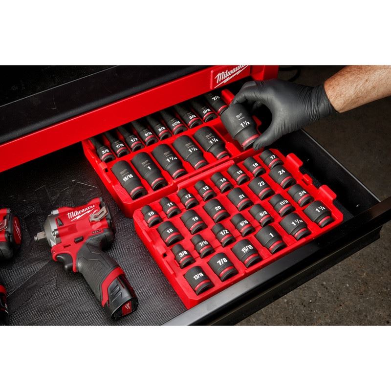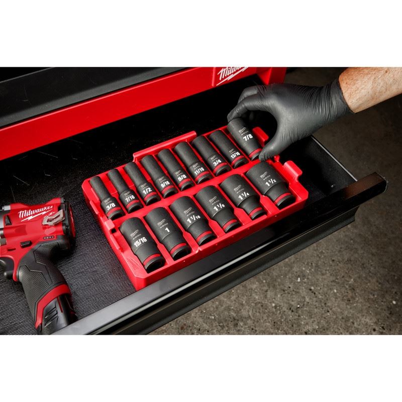 Milwaukee 49-66-6817 SHOCKWAVE Impact Duty Socket 1/2in Dr 15PC SAE TRAY Set