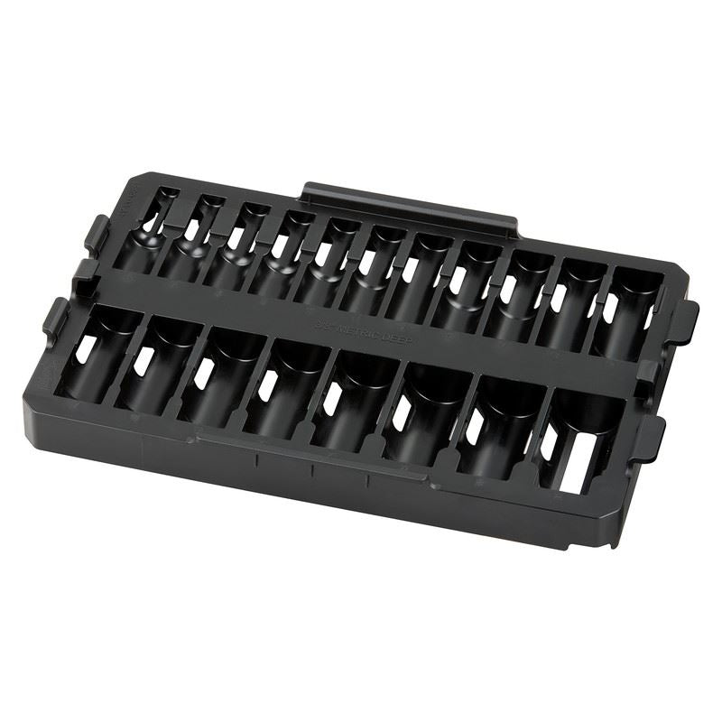 (1) Tray that fits the following Milwaukee SHOCKWAVE Impact Duty Deep Sockets: 6mm, 7mm, 8mm, 9mm, 10mm, 11mm, 12mm, 13mm, 14mm, 15mm, 16mm, 17mm, 18mm, 19mm, 20mm, 21mm, 22mm, 23mm, 24m