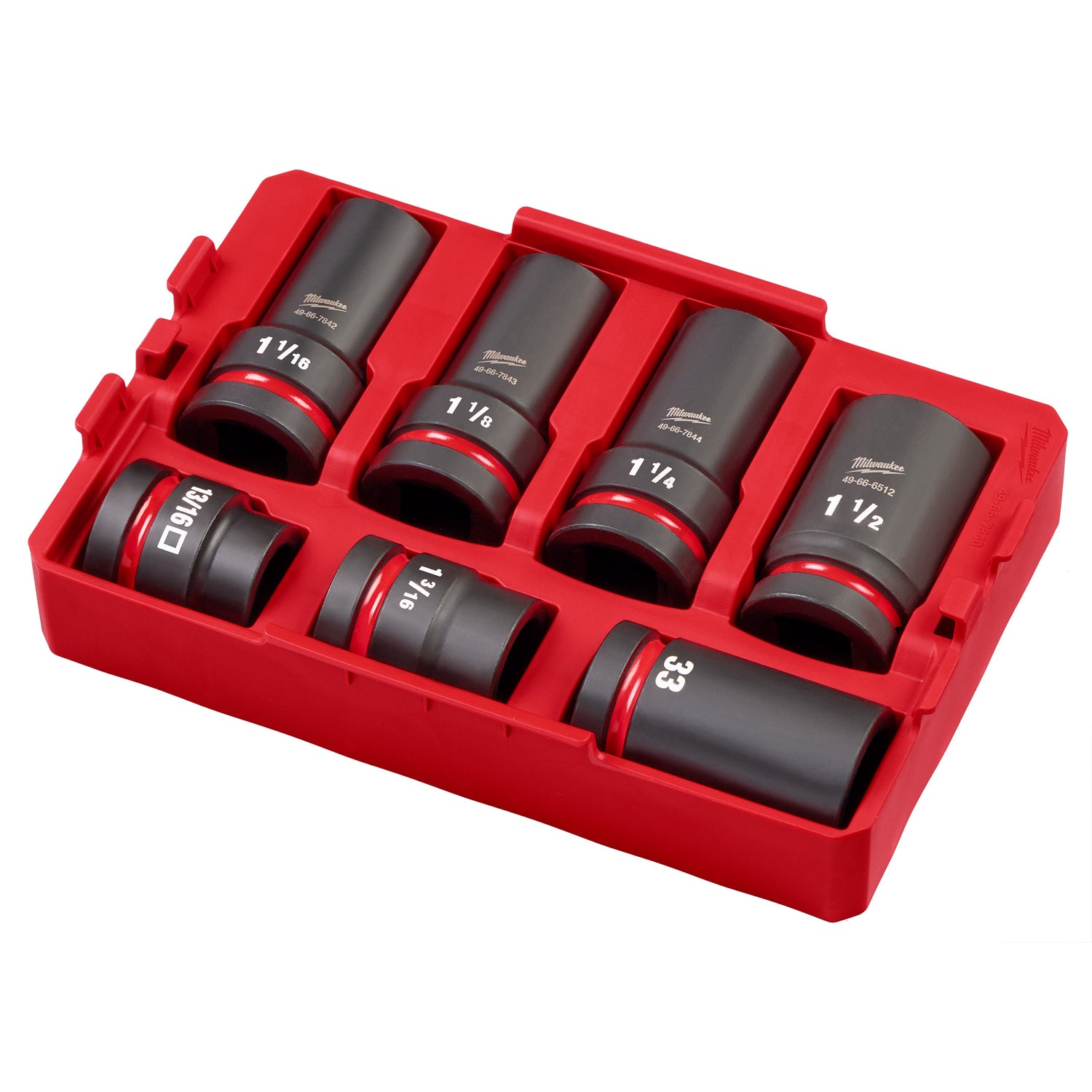 Milwaukee 49-66-7840 SHOCKWAVE Impact Duty™ 1” Drive 7PC MM & SAE Wheel Service Socket PACKOUT™ Set
