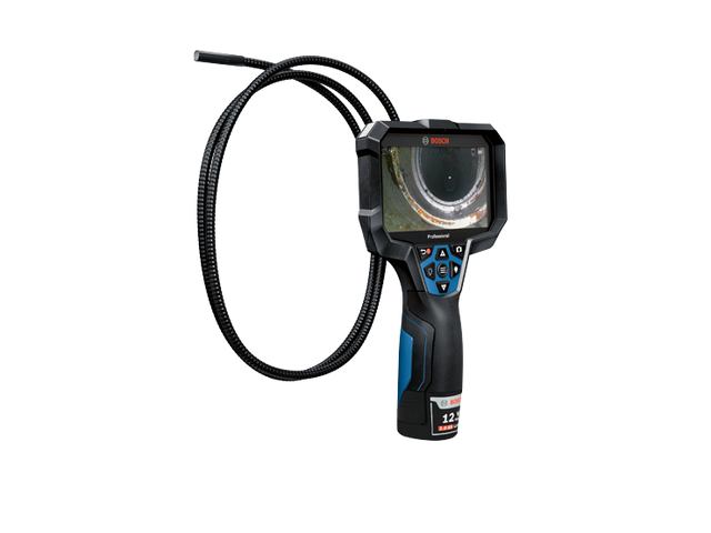 The Bosch GIC5-27C 12V Max Connected 11.5 Ft. Handheld Inspection Camera features a high-resolution, easy-to-see 5 In. display, assuring an in-depth, detailed inspection at every turn. The 11.5 Ft. camera cable helps navigate tight spaces on the jobsite. Like a compass, the tool comes equipped with an orientation indicator, allowing for focus on the task at hand instead of which end is up. Easy to use, the keypad and menu are designed for intuitive product handling, with simple, clearly marked buttons to adjust the camera view and lighting. Capture both photos and video for comprehensive documentation and further analysis. With the featured integrated connectivity, transfer files easily via the included USB-C cable and view them at a glance in the gallery. Built for comfort, the device’s ergonomic handle minimizes hand fatigue for longer inspection durations. The rubber housing combined with IP67 (camera cable) and IP54 (tool, does not include battery and battery compartment) ratings offer enhanced protection on the job. The inspection camera is efficiently powered by the Bosch 12V Max battery system for long-lasting reliability.