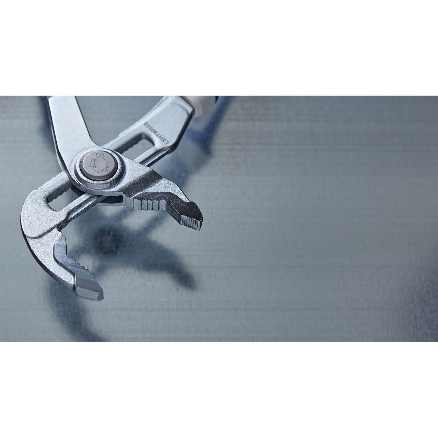 The LENOX® Quick-Adjust Pliers are 2X faster to adjust* vs traditional groove joint pliers with the patented quick adjust mechanism. The jaws can be opened utilizing the press and slide mechanism and adjusted closed with the simple push of the handle. Chrome plating helps resist rust or corrosion and its bi-material anti-pinch grips provide comfort. The slim profile design also fits more easily in tighter spaces.