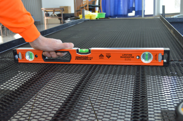 The workhorse of our level line, Johnson's 9850 levels are versatile enough to tackle any job, from rough carpentry to finish carpentry. The levels feature heavy-duty aluminum frames for strength and durability, and push-button removable endcaps for flush work. The 9850 is strong, lightweight, and durable, making it suitable for any job from rough carpentry to finish work. This non-magnetic level is preferred when working with wood studs - for use on steel studs or doorframes