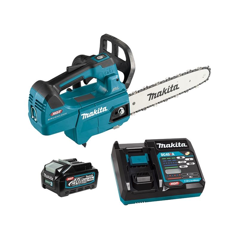 40V Max (4.0Ah) Li-Ion Battery BL4040 (BL4040), Rapid Charger (DC40RA), Battery Cover (412393-7), 12in Chain (191H01-8), 12in Guide Bar (191G15-1), Chain Cover (419288-5), Spike Bumper (346809-9), Wrench 13-16 (782023-7), Oil Supply (199897-3)