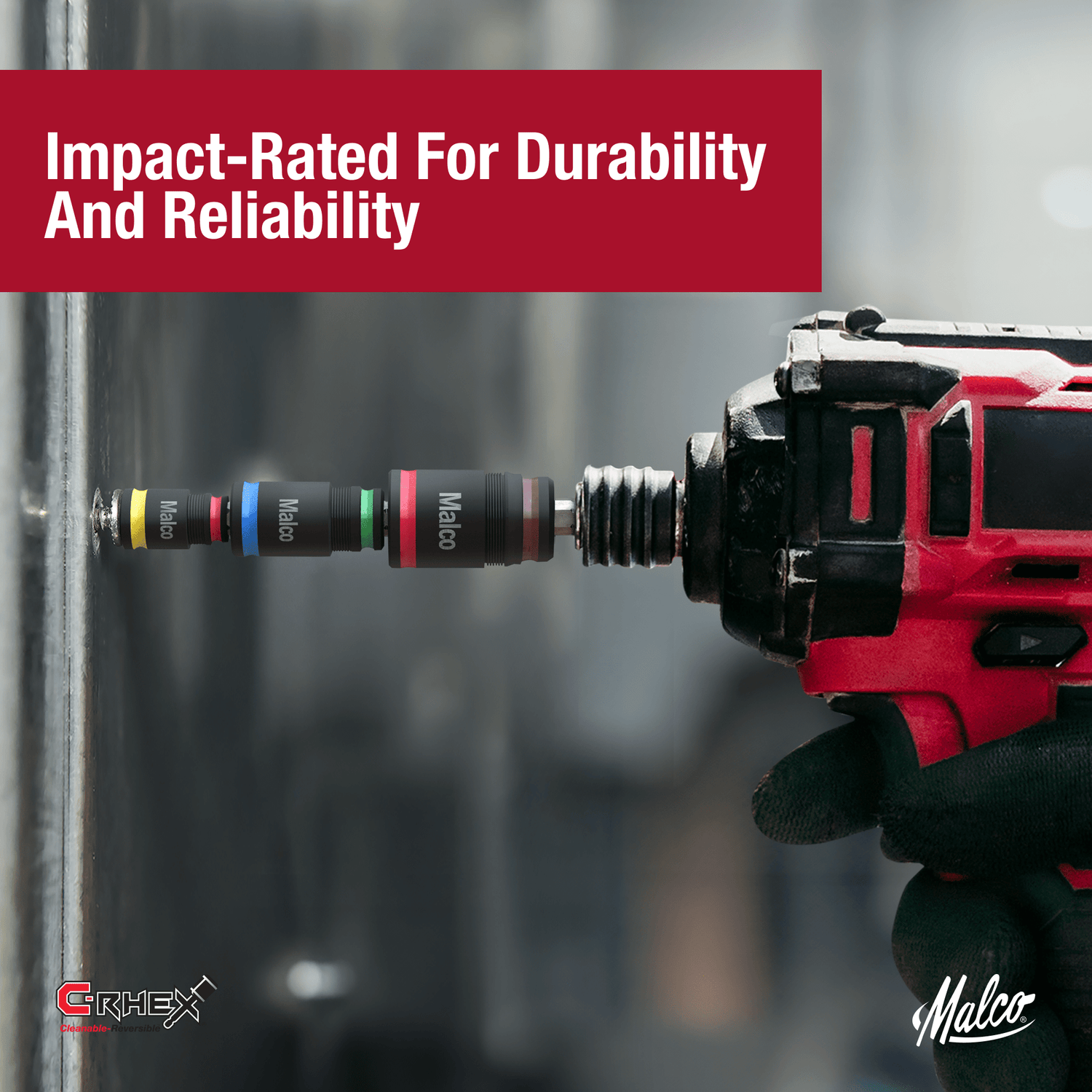 The #2 Robertson (Square) driver head is one of three integrated driver head options in the series, further improving the tools versatility and performance and making it a trusted choice for Trade Pros. It comes with three C-RHEX® reversible sockets that come color-coded to easily identify the six sizes. Malco’s 7-in-1 Flip Bit is designed to fit sockets snugly on the driver shaft for more secure operation and storage. The impact-rated 7-in-1 Flip Bit is engineered to make driving fasteners more secure by reducing wobbling, slipping, and tip-out. Malco is your choice for superior quality and fastening performance on the job site.
