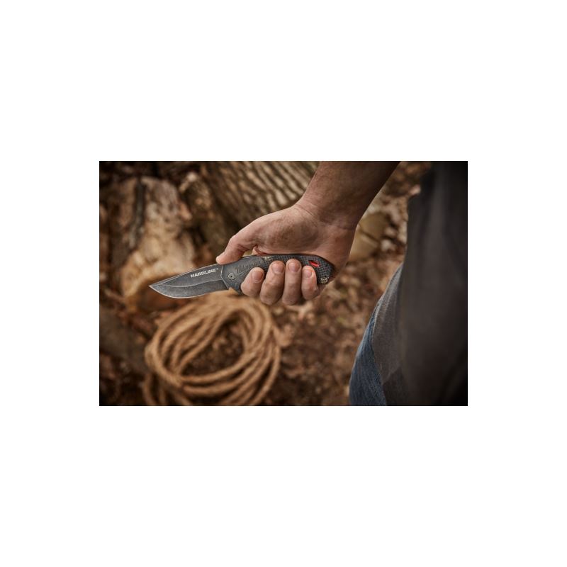 Milwaukee HARDLINE knives deliver uncompromising performance on or off the jobsite. This 3-1/2" Serrated Blade Pocket Knife features a D2 Steel blade that delivers extreme wear resistance.