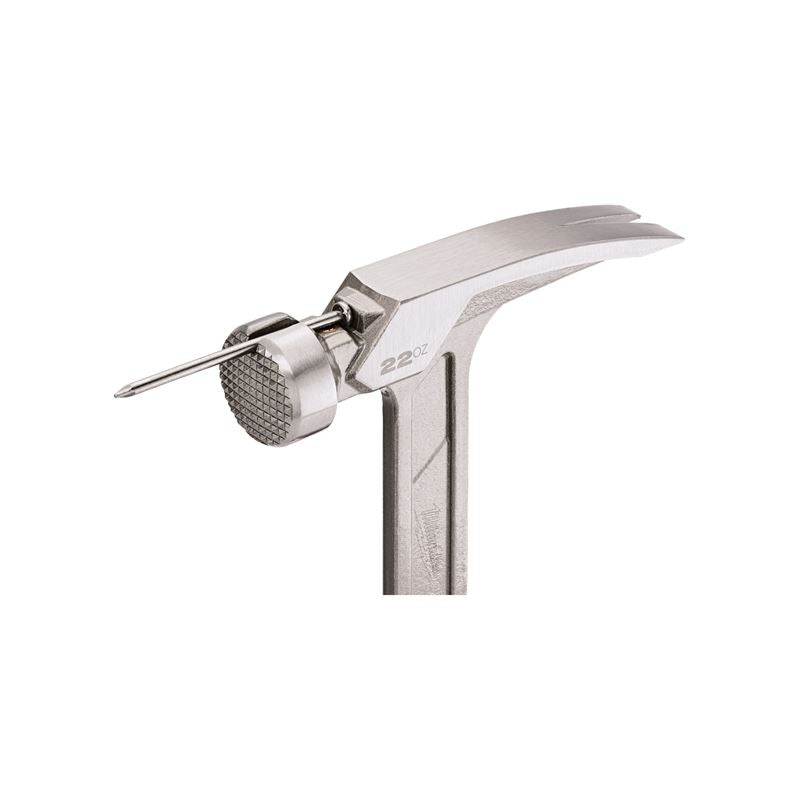 The Milwaukee 22 oz milled face hammer is designed from the ground-up to address common user frustrations with hammers currently available on the market, providing superior driving performance with up to 10X less peak vibration. Constructed with a steel I-Beam handle, the new hammer is designed to withstand the harshest jobsite use and a SHOCKWAVE grip provides best-in-class grip durability and vibration reduction. For added user benefit, the hammer features an anti-ring claw design which reduces noise and ringing when striking hardened objects.