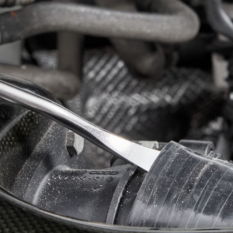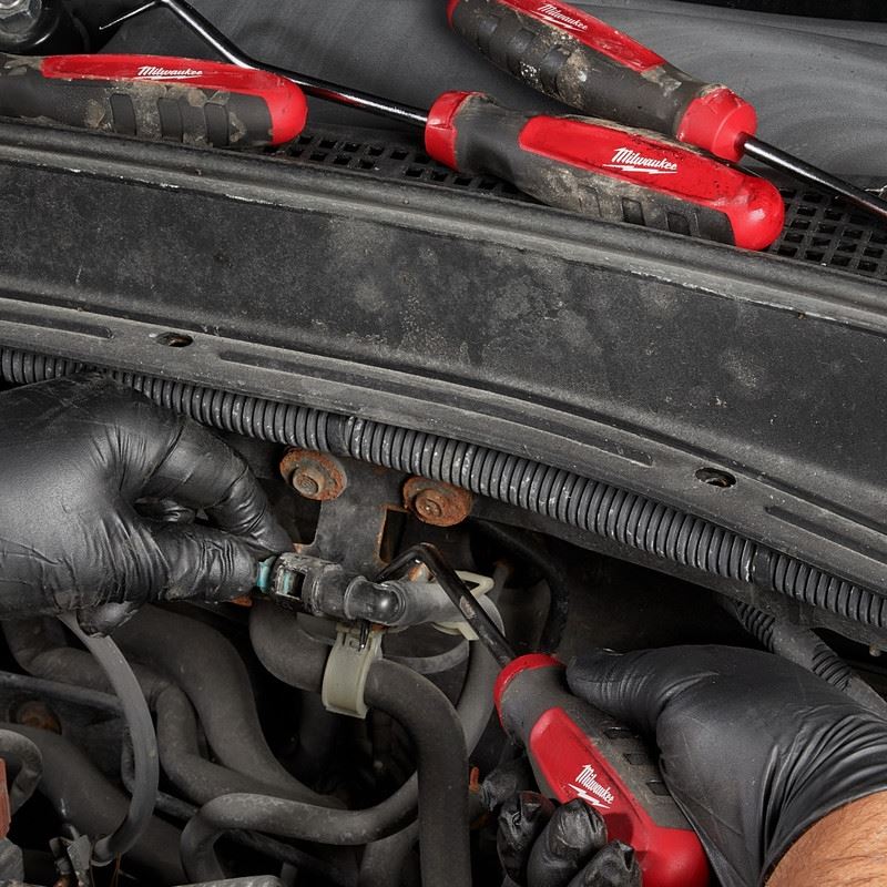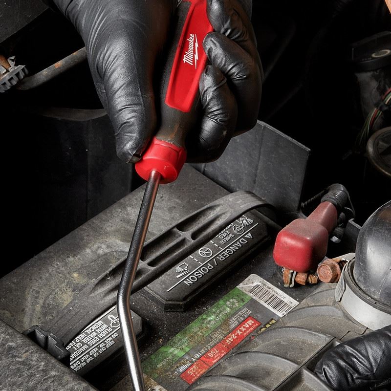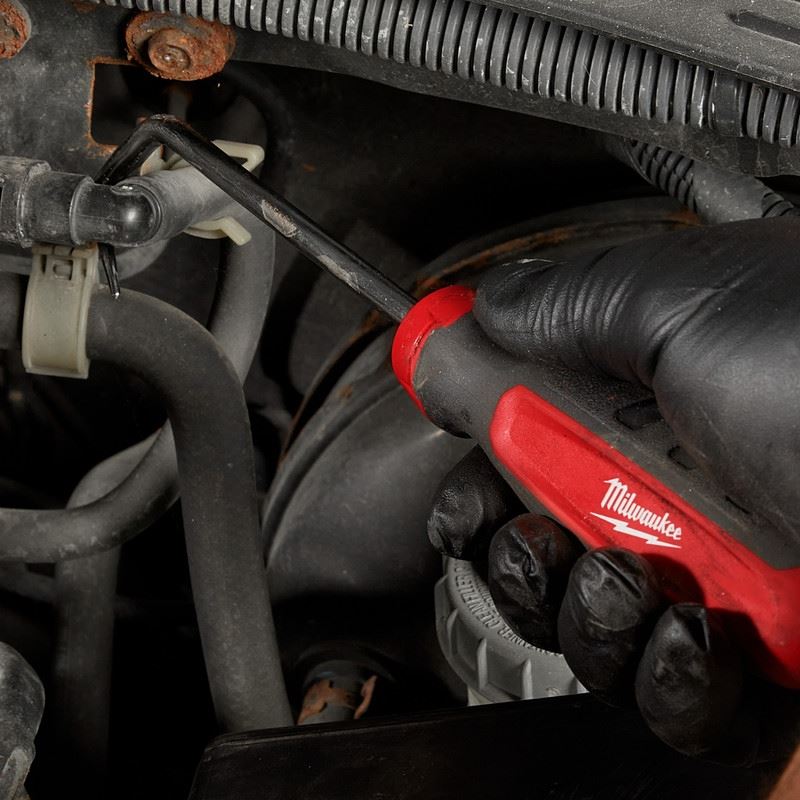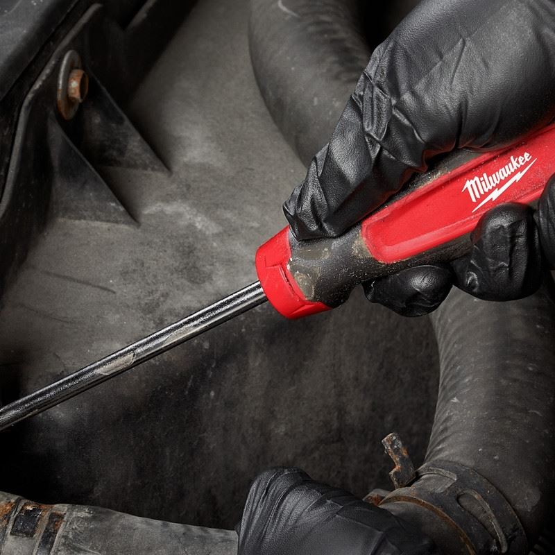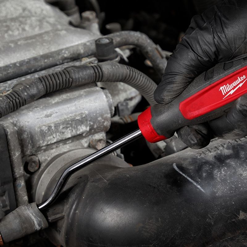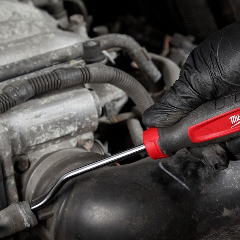 MILWAUKEE hose picks feature an all-metal core for up to 50 percent more durability. Each pick has a specific angle for different applications while the reinforced tip resists bending when loosening stubborn hoses. The flat pick provides puncture protection and reduces damage to hoses. Milwaukee Comfort grip handles give you increased tool control and comfort. This set features a hook, 90 degree, 45 degree, and flat hose pick along with a durable long-term storage tray for easy access and organization. These chrome-plated picks provide superior rust protection. All MILWAUKEE Mechanics Hand Tools are backed by a lifetime guarantee.INCLUDES: