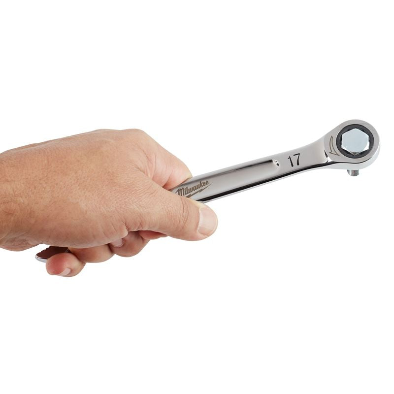 Milwaukees ratcheting combination wrenches offer an industry-leading 2.5 of arc swing, allowing our users to work quickly and efficiently even in the tightest of spaces. Our durable double-stacked pawls in the ratcheting mechanism offer longest ratchet life and best access with 144 ratcheting positions. The MAX BITE open-end grip improves the wrench's grip on nuts and bolts, offering 25% more torque than smooth-faced wrenches. The comfortable I-Beam handle design allows superior user comfort. Milwaukee wrenches feature ink-filled size labels for easy size identification, as well as quick distinction between SAE and metric sets. The 15 pc. sets come in trays designed for steel storage drawers, allowing for efficient storage with no wasted space. The 7 pc. kits come in a portable, locking storage tray, offering organization both on and off the jobsite. Standing behind our products, Milwaukee offers a lifetime guarantee on all of our ratcheting combination wrench sets.