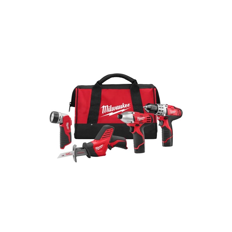 The 2498-24 M12 Cordless 4-Tool Combo Kit includes the M12 3/8" Drill Driver (2410-20), M12 1/4" Hex Impact Driver (2450-20), M12 HACKZALL Recip Saw (2420-20), and M12 Work Light (49-24-0145). The innovative M12 Cordless system is designed to deliver the power and Torque required for professional applications, in a size that reaches the tightest and toughest places. Powered by RED LITHIUM, the M12 cordless LITHIUM-ION system offers unmatched power, Speed, and Tool belt Portability.