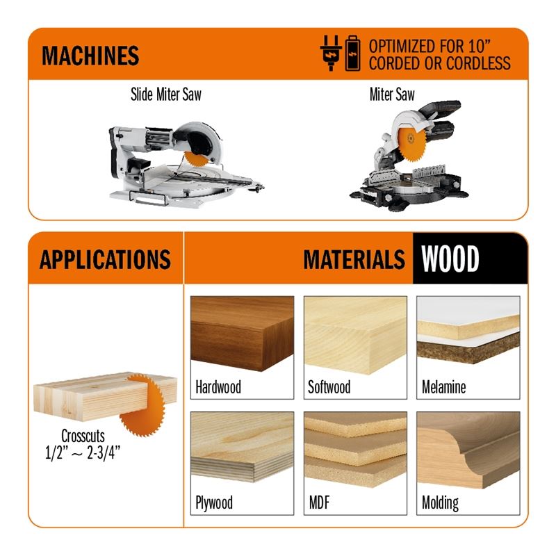 Optimized for 10 in corded or cordless miter saws/ sliding miter saws.