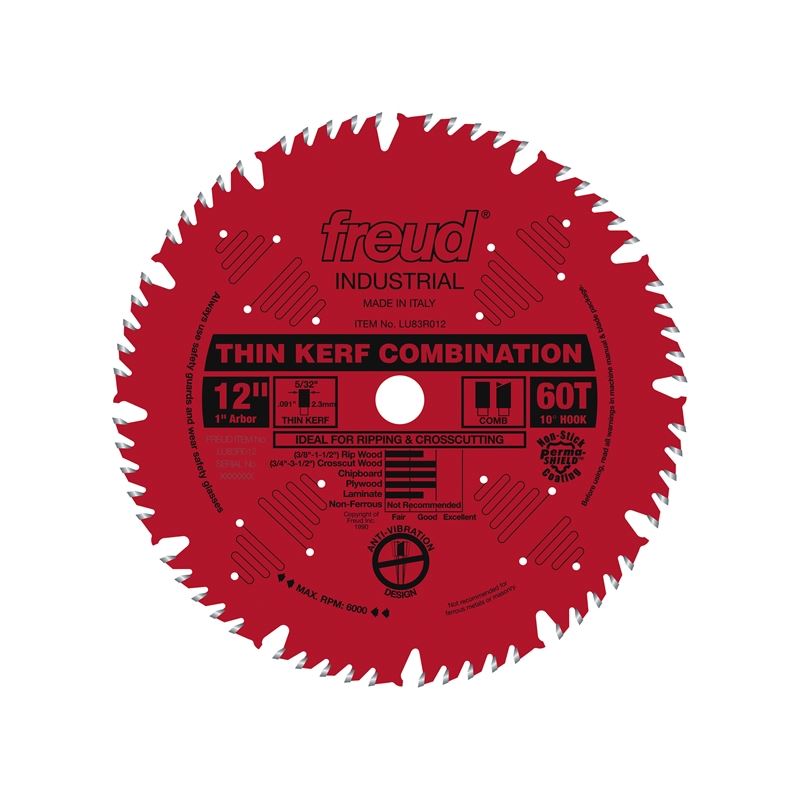 LU83R012 12" 60 Tooth ATB Thin Kerf Combination Saw Blade: