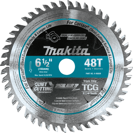 Makita A-98809 6‑1/2" 48T Carbide‑Tipped Cordless Plunge Saw Blade