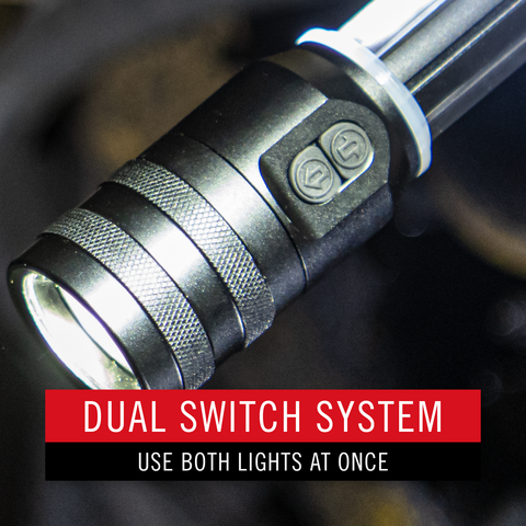 Dual-Color White & Red Beam - The right light for the moment. The Dual-Color White & Red Beam combines an all-white Utility Beam for general use with a red, anti-glare beam that prevents “night blinding” while also offering a tool for emergency signaling.