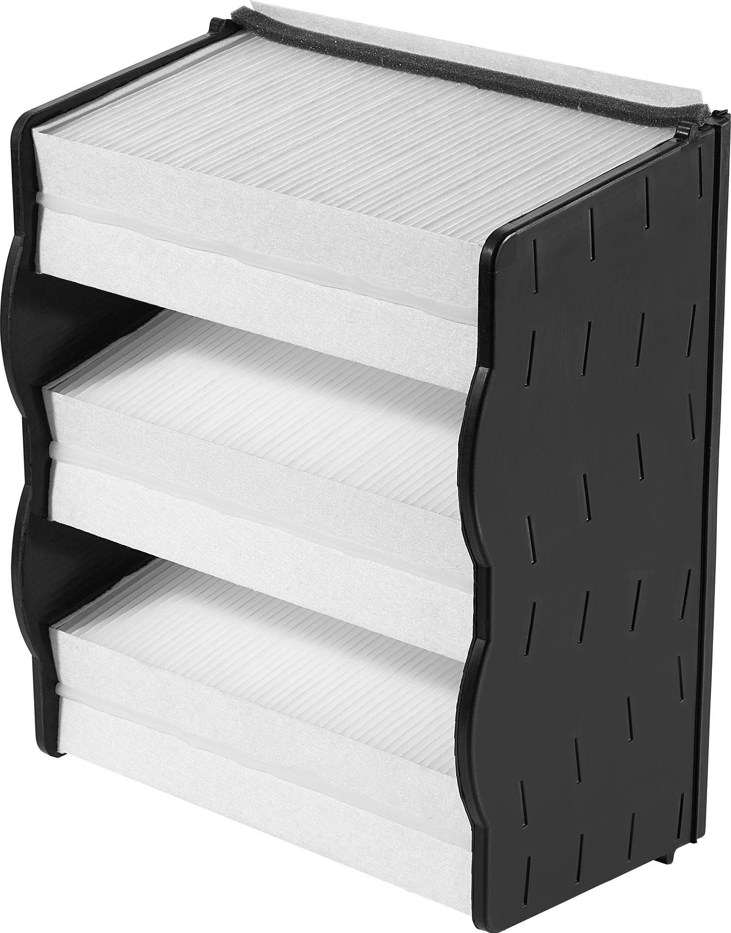 TripleV: The specially designed main filter optimizes performance in compact spaces. This design reduces rapid clogging and extends the filter's lifespan.