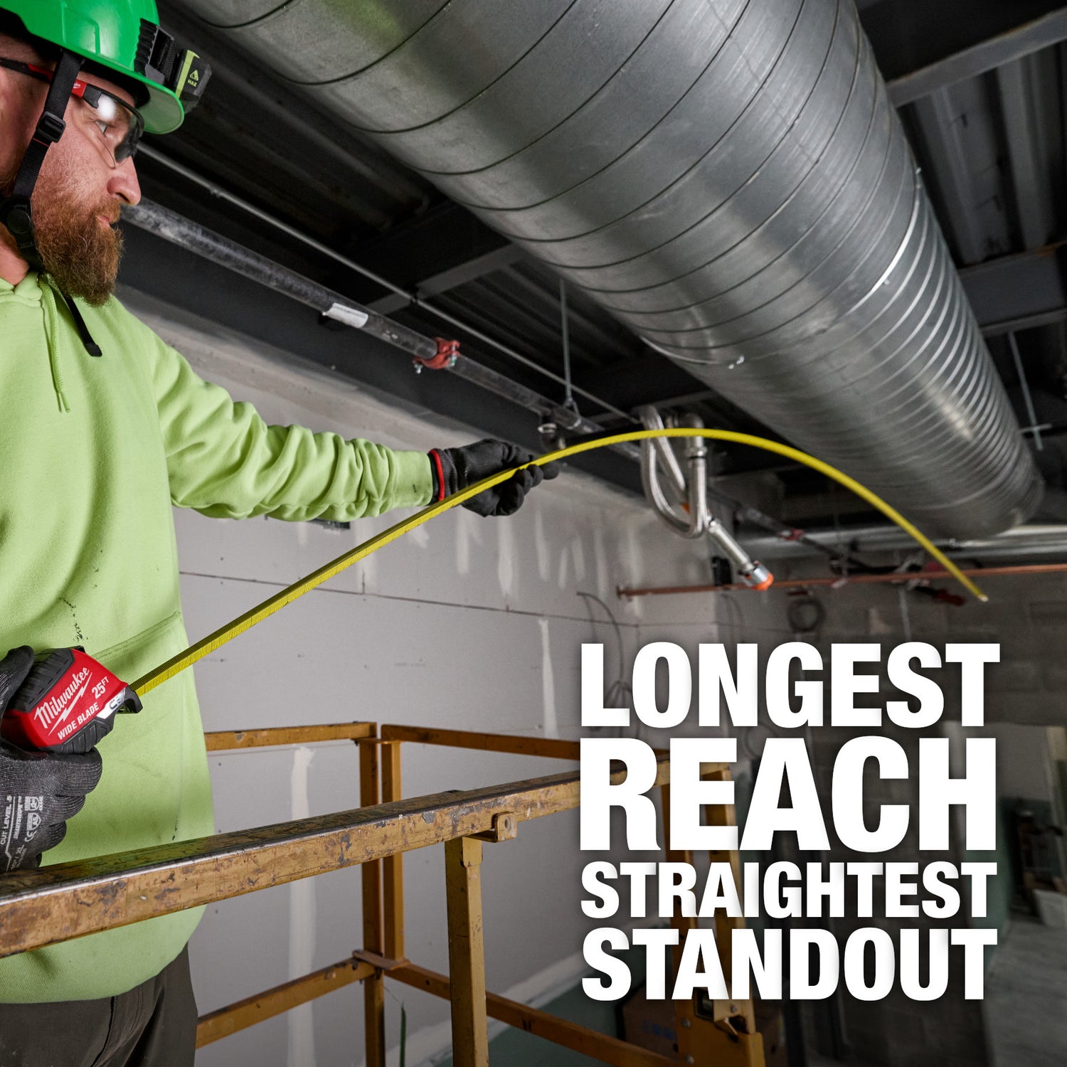 Our Wide Blade Magnetic Tape Measure delivers the longest reach and straightest standout in the industry. The Wide Blade Magnetic Tape Measure features a finger stop for quick, controlled blade retraction and double-sided anti-tear coating that reinforces the first 6” of the blade. This tape measure is equipped with a low-profile magnet and large hook for improved top and bottom hook grab onto common jobsite materials, and double-sided printing for measuring in different orientations. Built to withstand the jobsite, this tape is equipped with a fully reinforced impact resistant body and a wire form belt clip to reduce pocket tearing.