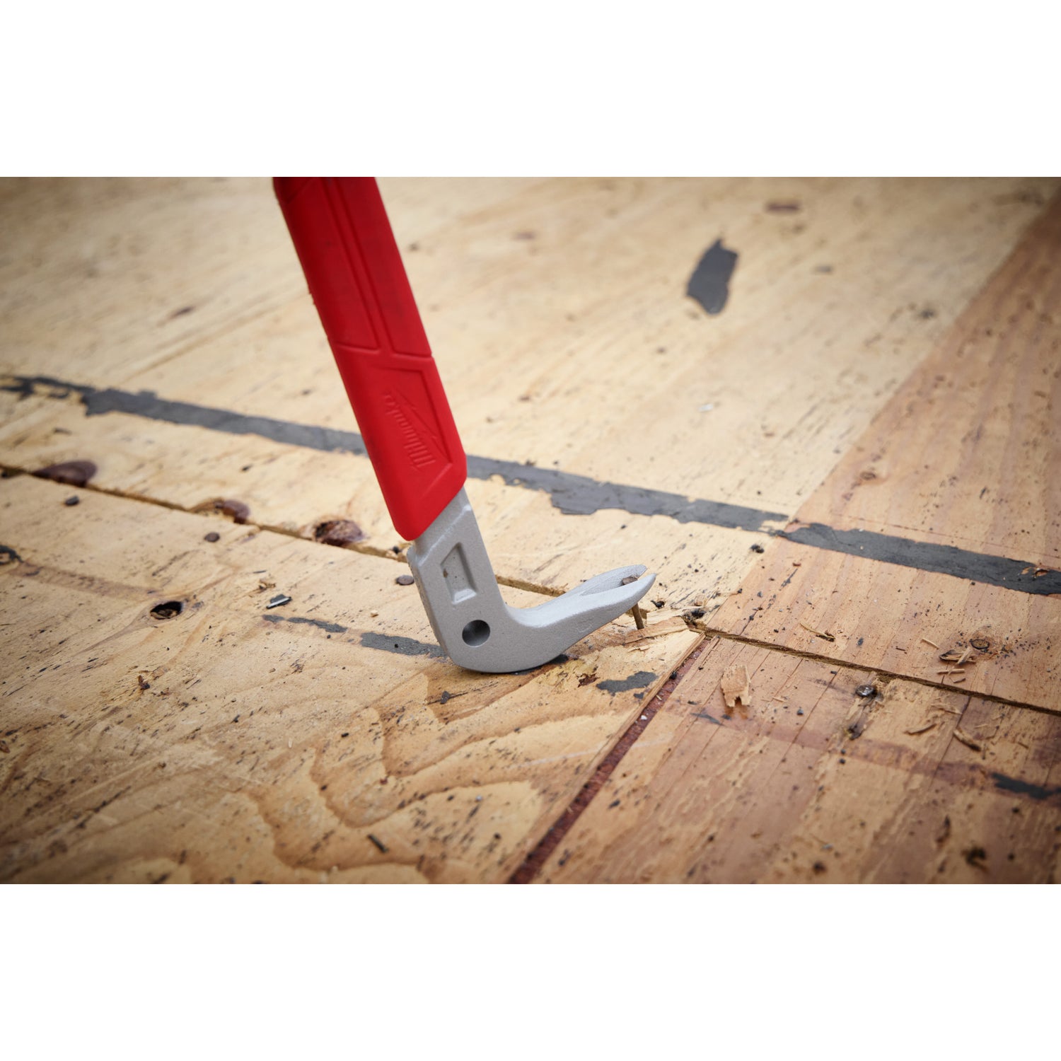 Our 16” Molding Puller is equipped with a SMOOTHPULL™ high-leverage head, delivering maximum leverage for quick nail removal. The grip is the most durable in the industry, offering wear resistance for continual comfort over the life of the tool and vibration reduction when struck by a hammer. The beveled edges of the molding puller allow for better access to hard-to-reach nails, and the wide claw helps lift shingles and siding. The precision claws and integrated nail removal feature on the head of the Molding Puller allow you to remove embedded nails, reducing damage to surrounding materials. The 3 nail slots are optimized for 8D-16D nails, delivering increased efficiency on the job site. A Limited Lifetime Warranty covers the 16” Molding Puller