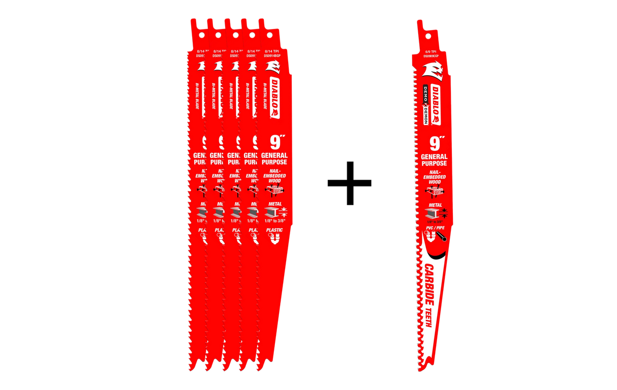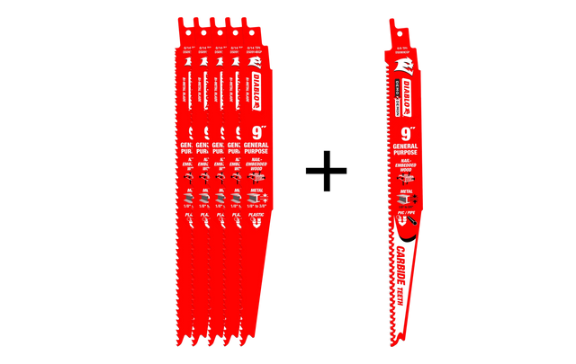 DIABLO DS0914BGP5PC 5+1 9” 8/14TPI Bi-Metal General Purpose Reciprocating Saw Blades for Nail Embedded Wood and Metal Cutting