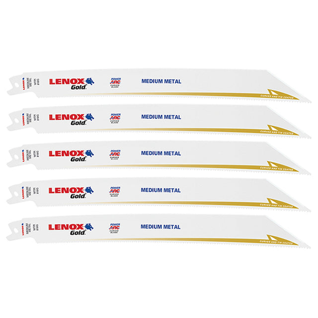 LENOX 21070818GR Gold® Power Arc® Curved Metal Cutting 8" Reciprocating Saw Blades 18TPI 5/PK