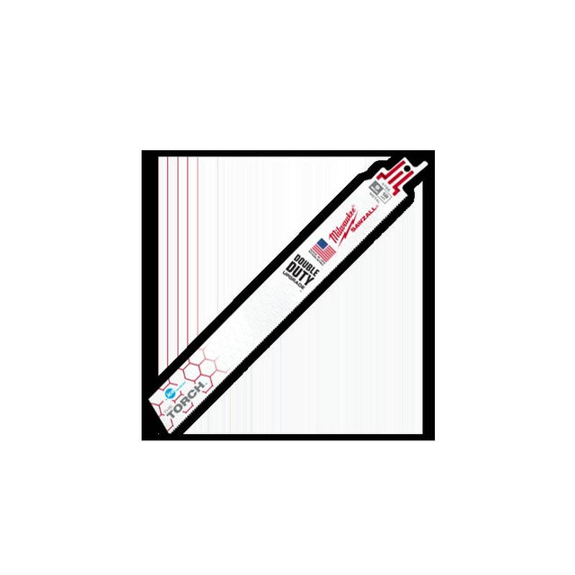 The Torch metal-cutting blades with the Double Duty Upgrade feature a tooth form optimized for the longest life and maximum durability. Tough Neck is engineered to protect against tang breakage and delivers the strongest SAWZALL blade tang on the market. Grid Iron features a stamped